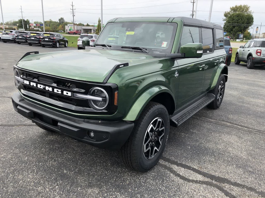 EQUIPMENT GROUP 314A LUX PACKAGE Evasive Steering Assist, Adaptive Cruise Control, Information on Demand Panel, Radio: B&O Sound System by Bang & Olufsen, 12 speakers including subwoofer, Front Parking Sensors, 360-Degree Camera, Universal Garage Door Opener, Sideview Mirrors, LED approach lamps and LED spotlight, CARBONIZED GRAY MOLDED-IN-COLOR HARD TOP Rear-Window Defroster & Washer, FRONT & REAR FLOOR LINERS W/O CARPET FLOOR MATS Custom accessory, pre-installed, Deletes carpet front and rear floor mats, TRANSMISSION: 10-SPEED AUTOMATIC trail control and trail turn assist (STD). Ford Outer Banks with Eruption Green exterior and Black Onyx interior features a 4 Cylinder Engine with 275 HP at 5700 RPM*.