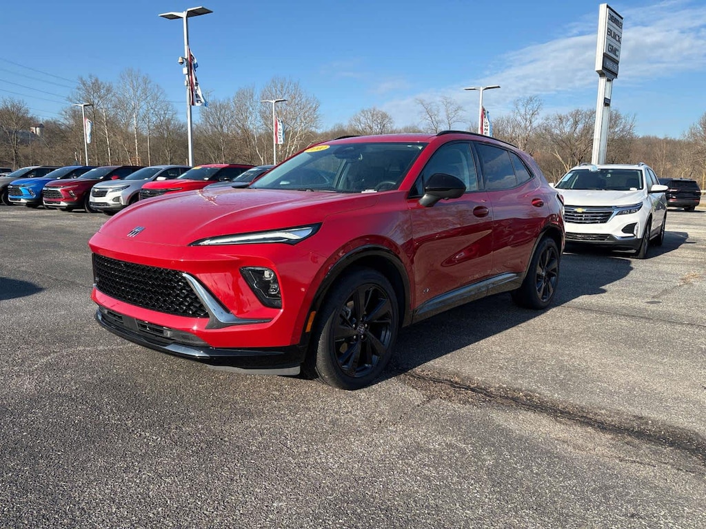 TILT-SLIDING, COMFORT AND CONVENIENCE PACKAGE includes (KI3) heated steering wheel, (KA1) heated driver and front passenger seats, (BTV) Remote vehicle starter system, (CJ2) dual-zone air conditioning, (USK) air quality indicator, (UEC) automatic air recirculation, (UG1) Universal Home Remote and (TC2) Hands-free power liftgate, SIDI (228 hp [170 kW] @ 5000 rpm, 258 lb-ft of torque [350 N-m] @ 1500-4000 rpm) (STD), 9-SPEED AUTOMATIC (STD). Buick Sport Touring with Brilliant Red exterior and Ebony seats with Sky Cool Gray and Ebony interior accents interior features a 4 Cylinder Engine with 228 HP at 5000 RPM*.
