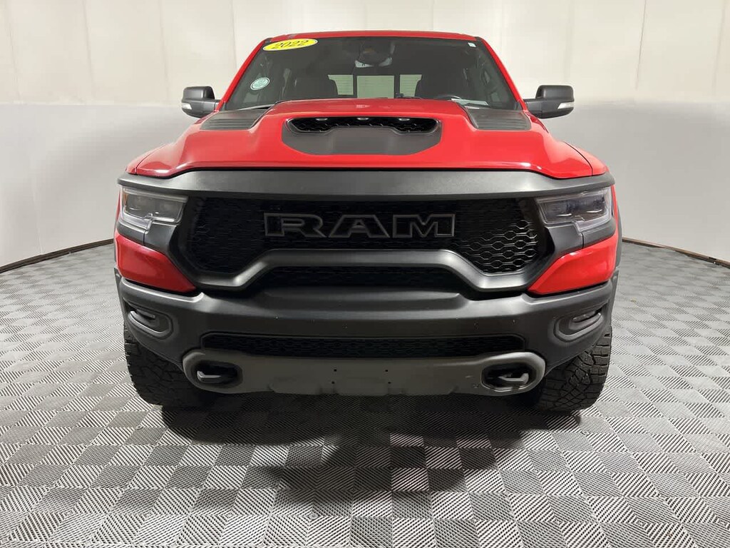 Electronic Stability Control, Adjustable Pedals, Brake Assist, 4-Wheel ABS, Tire Pressure Monitoring System, 4-Wheel Disc Brakes Ram TRX with Flame Red Clearcoat exterior and Black interior features a 8 Cylinder Engine with 702 HP at 6100 RPM*.