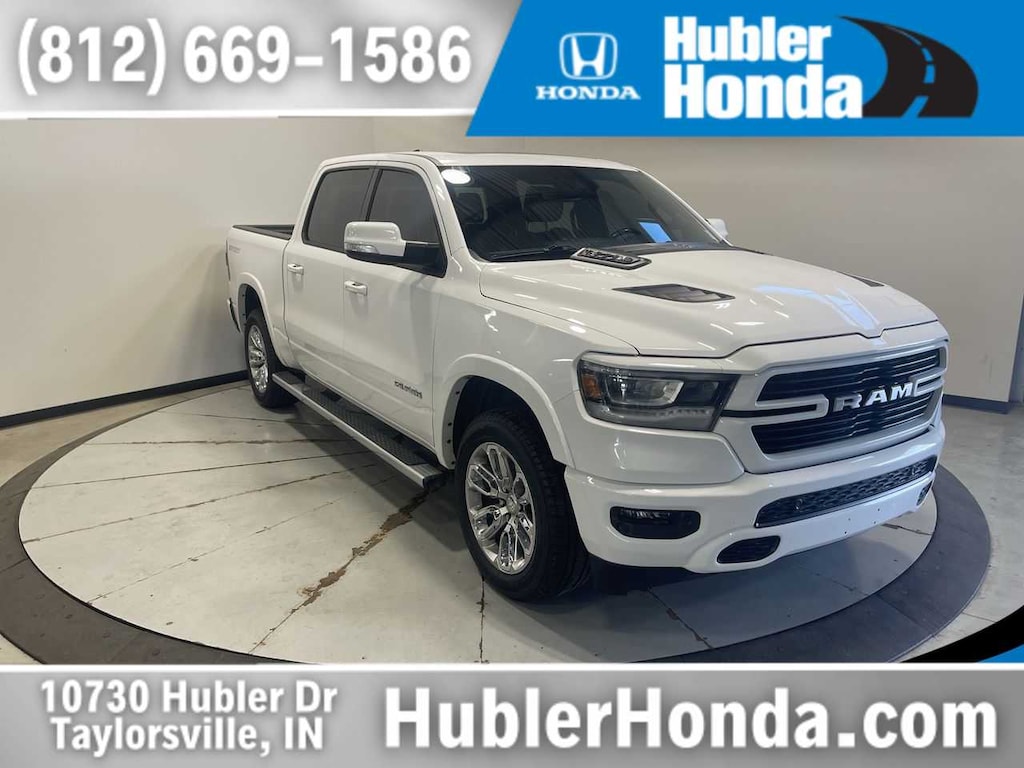 ENGINE: 5.7L V8 HEMI MDS VVT Active Noise Control System, Heavy Duty Engine Cooling, Passive Tuned Mass Damper, GVWR: 7,100 lbs, Dual Rear Exhaust w/Bright Tips, HEMI Badge, 220 Amp Alternator, SPORT APPEARANCE PACKAGE Tires: 275/55R20 OWL All Season, Twill Film Appliques, Body Color Premium Power Mirrors, Sport Performance Hood, Sport Decal, Body Color Door Handles, Wheels: 20 x 9 Premium Painted w/Inserts, Body Color Exterior Mirrors, Black Interior Accents, Body Color Front Bumper, Body Color Rear Bumper w/Step Pads, Grille Surround 3 Body Color Tex 2 Black, All Plant-Installed Decals, LARAMIE LEVEL I EQUIPMENT GROUP Remote Tailgate Release, Auto High Beam Headlamp Control, Blind Spot & Cross Path Detection, Rain Sensitive Windshield Wipers, ParkSense Front/Rear Park Assist w/Stop, Foam Bottle Insert (Door Trim Panel), RADIO: UCONNECT 5 NAV W/12.0 DISPLAY USB Host Flip, Disassociated Touchscreen Display, HD Radio, For More Info, Call 800-643-2112, Integrated Voice Command w/Bluetooth®, 12 Touchscreen Display, GPS Navigation, SiriusXM w/360L, All Radio Equipped Vehicles, Connected Travel & Traffic Services, All R1 High Radios, DUAL-PANE PANORAMIC SUNROOF LED Dome/Reading Lamp, Dome Dual LED Reading Lamp, BLACK, LEATHER TRIMMED BUCKET SEATS Bucket Seats, Full Length Upgraded Floor Console, TRANSMISSION: 8-SPEED AUTOMATIC (8HP75). MP3 Player, Privacy Glass, Keyless Entry, Child Safety Locks, Steering Wheel Controls. LOCATED AT HUBLER HONDA IN TAYLORSVILLE